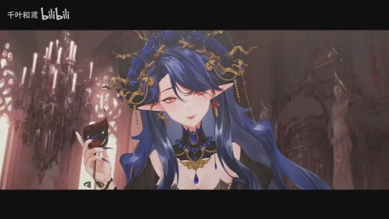Ravenna, a mysterious figure who could be either an elf or a witch, captivates with her dark and intriguing presence. Her long red hair and scarlet eyes give her an eerie beauty. Dressed in an elaborate black and red gown with gold and floral embellishments, she exudes a sinister majesty. The wings and gothic elements of her outfit underscore her dark, magical nature, leaving her true identity ambiguous.